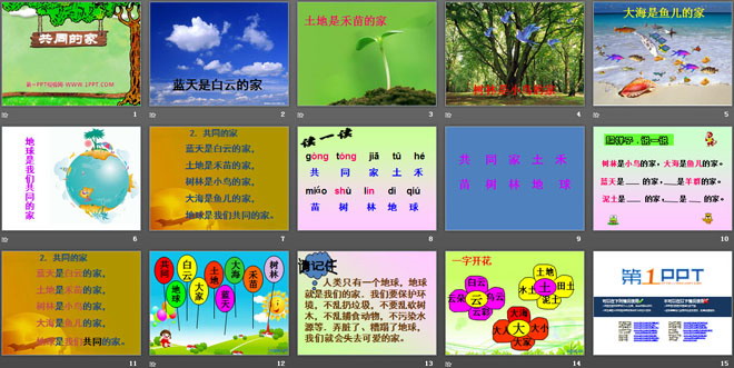关键词:共同的家教学课件,语文S版一年级上册语文课件,一年级语文幻灯片课件下载,共同的家PPT课件下载,.ppt格式