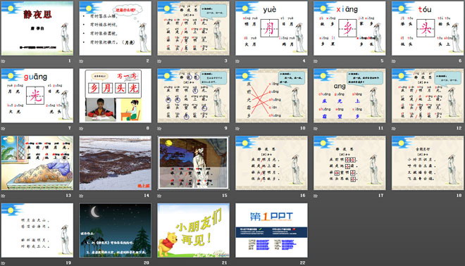 关键词:静夜思教学课件,语文S版一年级上册语文课件,一年级语文幻灯片课件下载,静夜思PPT课件下载,.ppt格式