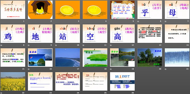 关键词:世界多美呀教学课件,语文S版一年级下册语文课件,一年级语文幻灯片课件下载,世界多美呀PPT课件下载,.ppt格式