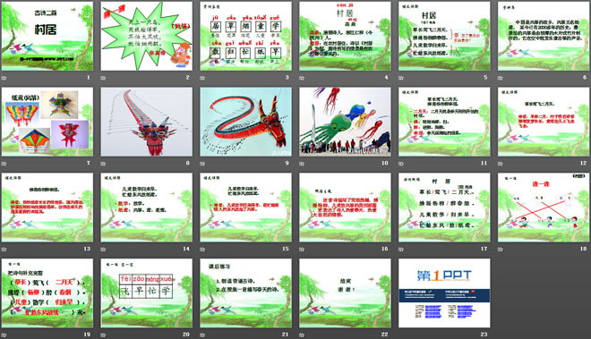 关键词:村居教学课件,语文S版一年级上册语文课件,一年级语文幻灯片课件下载,村居PPT课件下载,.ppt格式
