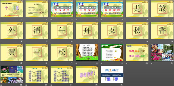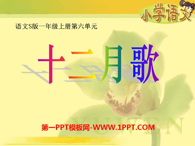 关键词:十二月歌教学课件,语文S版一年级上册语文课件,一年级语文幻灯片课件下载,十二月歌PPT课件下载,.ppt格式