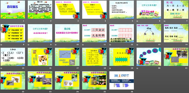 关键词:百花园教学课件,语文S版一年级上册语文课件,一年级语文幻灯片课件下载,百花园PPT课件下载,.ppt格式