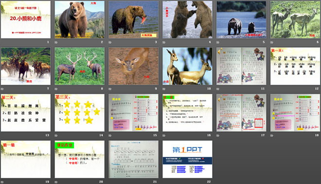 关键词:小熊和小鹿教学课件,语文S版一年级下册语文课件,一年级语文幻灯片课件下载,小熊和小鹿PPT课件下载,.ppt格式