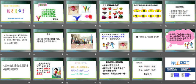 关键词:毽子变乖了教学课件,语文S版一年级下册语文课件,一年级语文幻灯片课件下载,毽子变乖了PPT课件下载,.ppt格式