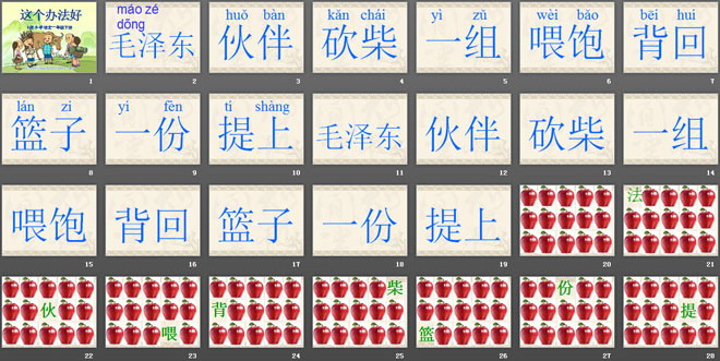 毛泽东七岁的时候,常和小伙伴们到山上去放牛,砍柴,捡果子。