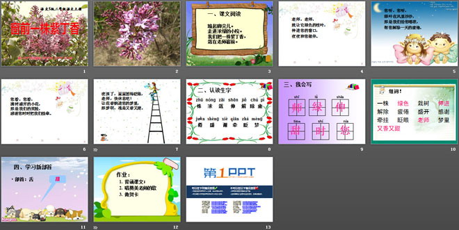 关键词:窗前一株紫丁香教学课件,语文S版二年级上册语文课件,二年级语文幻灯片课件下载,窗前一株紫丁香PPT课件下载,.ppt格式