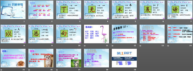 关键词:只听半句教学课件,语文S版一年级下册语文课件,一年级语文幻灯片课件下载,只听半句PPT课件下载,.ppt格式