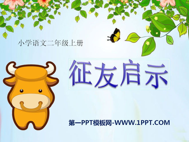 同学们,动物王国里有只小牛很孤单,一心想找个朋友,于是,它贴出了一张征友启事。现在让我们去看看它有没有找到朋友。