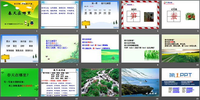 关键词:春天在哪里教学课件,语文S版二年级下册语文课件,二年级语文幻灯片课件下载,春天在哪里PPT课件下载,.ppt格式