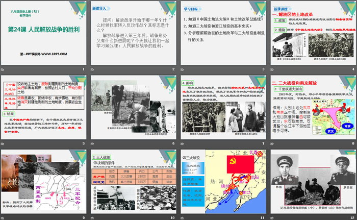 关键词:部编人教版八年级上册历史PPT课件免费下载,人民解放战争的胜利PPT下载,.PPT格式;