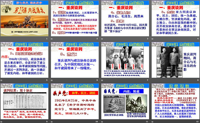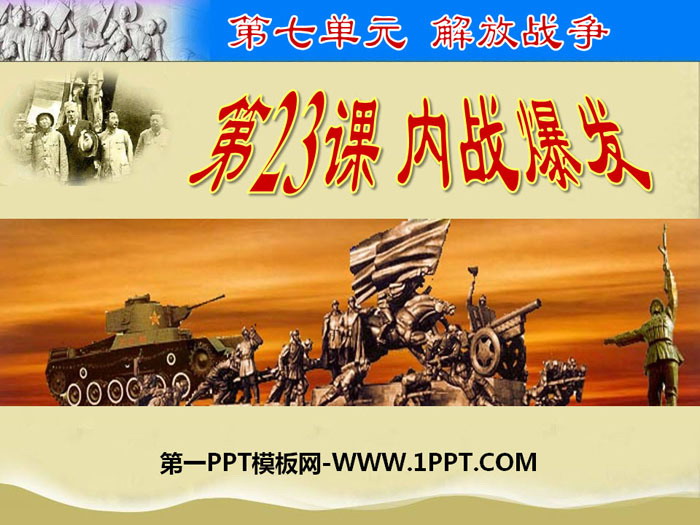 关键词:部编人教版八年级上册历史PPT课件免费下载,内战爆发PPT下载,.PPT格式;