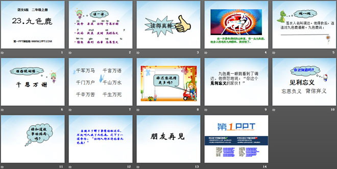 关键词:九色鹿教学课件,语文S版二年级上册语文课件,二年级语文幻灯片课件下载,九色鹿PPT课件下载,.ppt格式