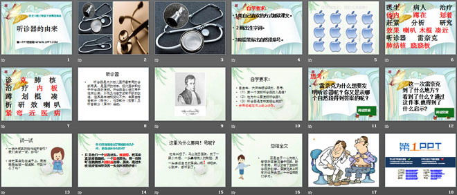 关键词:听诊器的由来教学课件,语文S版二年级下册语文课件,二年级语文幻灯片课件下载,听诊器的由来PPT课件下载,.ppt格式