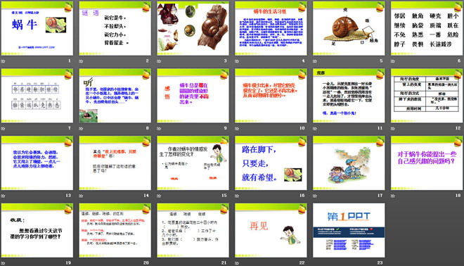 关键词:蜗牛教学课件,语文S版三年级上册语文课件,三年级语文幻灯片课件下载,蜗牛PPT课件下载,.ppt格式