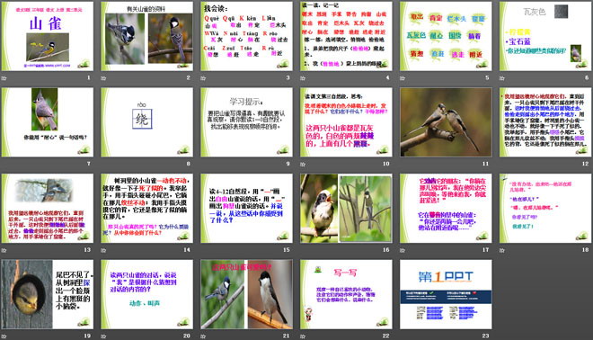 关键词:山雀教学课件,语文S版三年级上册语文课件,三年级语文幻灯片课件下载,山雀PPT课件下载,.ppt格式