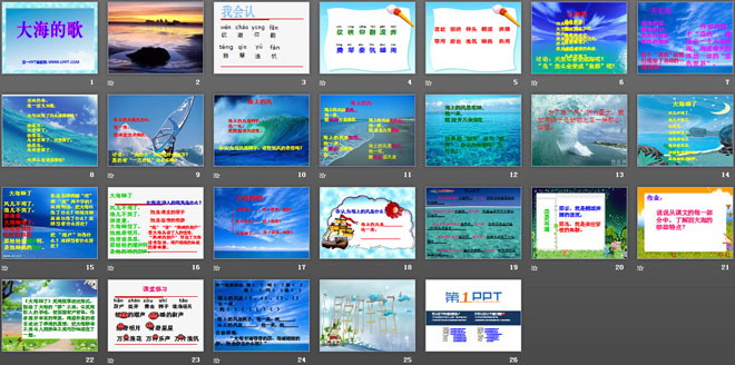 关键词:大海的歌教学课件,语文S版三年级上册语文课件,三年级语文幻灯片课件下载,大海的歌PPT课件下载,.ppt格式