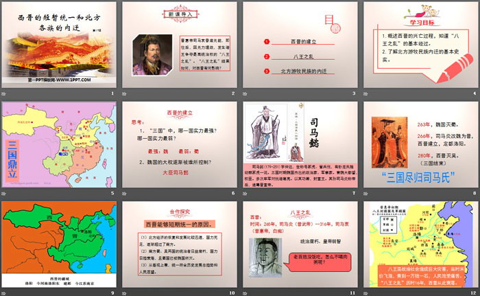 关键词:部编人教版七年级上册历史PPT课件免费下载,西晋的短暂统一和北方各族的内迁PPT下载,.PPT格式;