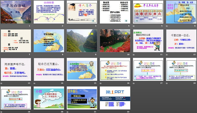 关键词:早发白帝城教学课件,语文S版三年级上册语文课件,三年级语文幻灯片课件下载,早发白帝城PPT课件下载,.ppt格式