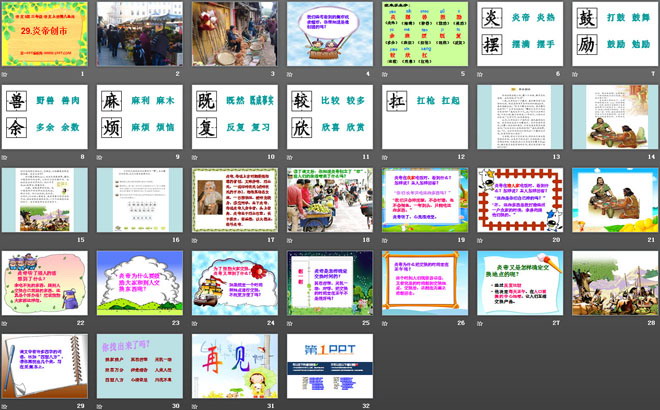 关键词:炎帝创市教学课件,语文S版三年级上册语文课件,三年级语文幻灯片课件下载,炎帝创市PPT课件下载,.ppt格式