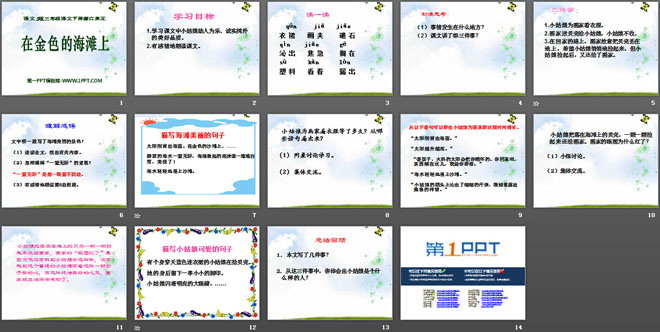 关键词:在金色的海滩上教学课件,语文S版三年级下册语文课件,三年级语文幻灯片课件下载,在金色的海滩上PPT课件下载,.ppt格式
