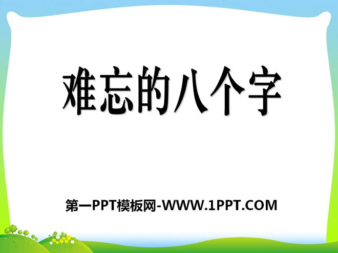 关键词:难忘的八个字教学课件,语文S版三年级下册语文课件,三年级语文幻灯片课件下载,难忘的八个字PPT课件下载,.ppt格式
