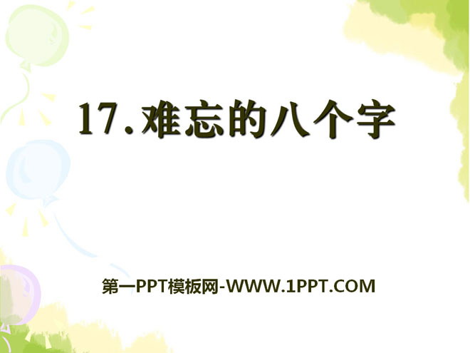 关键词:难忘的八个字教学课件,语文S版三年级下册语文课件,三年级语文幻灯片课件下载,难忘的八个字PPT课件下载,.ppt格式