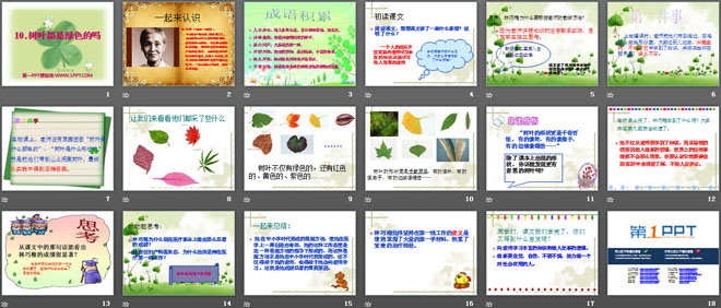 关键词:树叶都是绿色的吗教学课件,语文S版四年级上册语文课件,四年级语文幻灯片课件下载,树叶都是绿色的吗PPT课件下载,.ppt格式