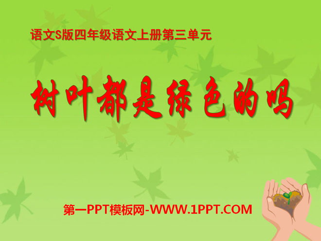 关键词:树叶都是绿色的吗教学课件,语文S版四年级上册语文课件,四年级语文幻灯片课件下载,树叶都是绿色的吗PPT课件下载,.ppt格式