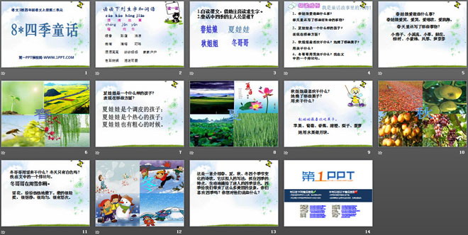 关键词:四季童话教学课件,语文S版四年级上册语文课件,四年级语文幻灯片课件下载,四季童话PPT课件下载,.ppt格式