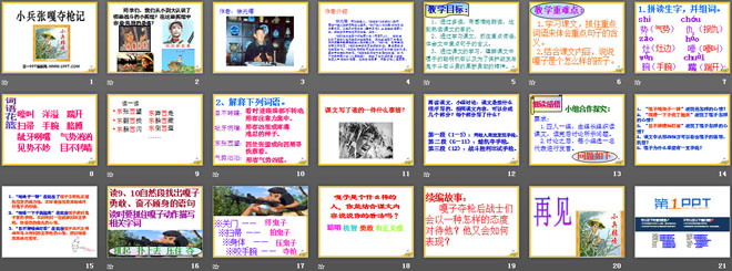 关键词:小兵张嘎夺枪记教学课件,语文S版四年级上册语文课件,四年级语文幻灯片课件下载,小兵张嘎夺枪记PPT课件下载,.ppt格式