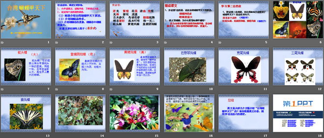 关键词:台湾蝴蝶甲天下教学课件,语文S版四年级上册语文课件,四年级语文幻灯片课件下载,台湾蝴蝶甲天下PPT课件下载,.ppt格式