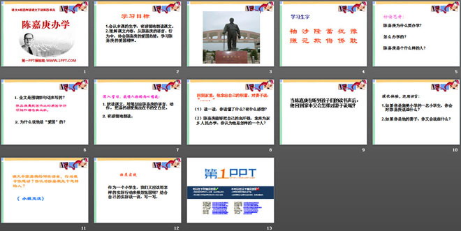 关键词:陈嘉庚办学教学课件,语文S版四年级下册语文课件,四年级语文幻灯片课件下载,陈嘉庚办学PPT课件下载,.ppt格式