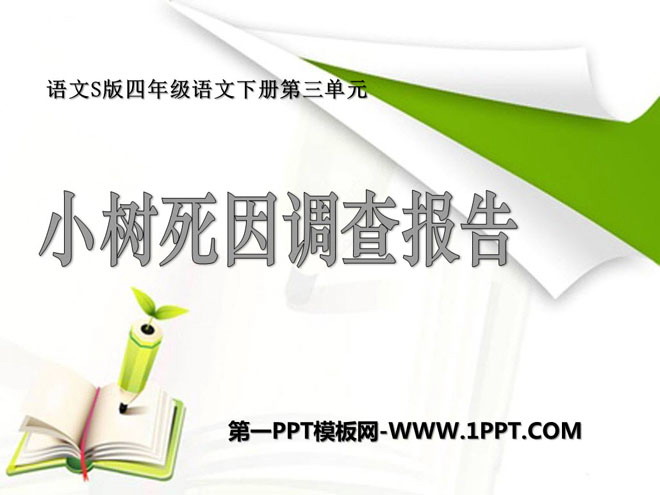 关键词:小树死因调查报告教学课件,语文S版四年级下册语文课件,四年级语文幻灯片课件下载,小树死因调查报告PPT课件下载,.ppt格式