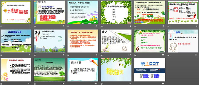 关键词:小树死因调查报告教学课件,语文S版四年级下册语文课件,四年级语文幻灯片课件下载,小树死因调查报告PPT课件下载,.ppt格式