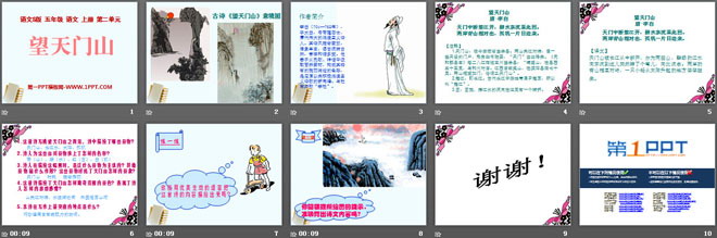 关键词:望天门山教学课件,语文S版五年级上册语文课件,五年级语文幻灯片课件下载,望天门山PPT课件下载,.ppt格式