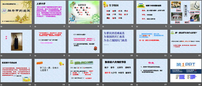关键词:端午节的由来教学课件,语文S版四年级下册语文课件,四年级语文幻灯片课件下载,端午节的由来PPT课件下载,.ppt格式