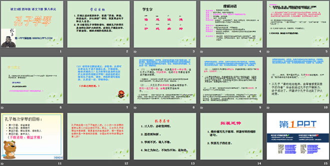 关键词:孔子学琴教学课件,语文S版四年级下册语文课件,四年级语文幻灯片课件下载,孔子学琴PPT课件下载,.ppt格式