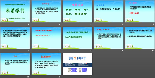 关键词:米芾学书教学课件,语文S版四年级下册语文课件,四年级语文幻灯片课件下载,米芾学书PPT课件下载,.ppt格式