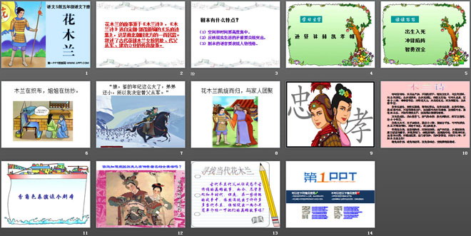 关键词:花木兰教学课件,语文S版五年级下册语文课件,五年级语文幻灯片课件下载,花木兰PPT课件下载,.ppt格式