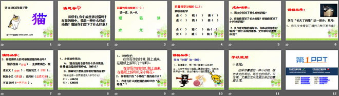 关键词:猫教学课件,语文S版五年级下册语文课件,五年级语文幻灯片课件下载,猫PPT课件下载,.ppt格式