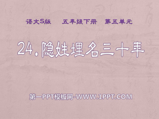 关键词:隐姓埋名三十年教学课件,语文S版五年级下册语文课件,五年级语文幻灯片课件下载,隐姓埋名三十年PPT课件下载,.ppt格式