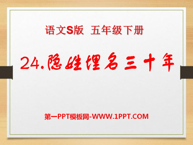 关键词:隐姓埋名三十年教学课件,语文S版五年级下册语文课件,五年级语文幻灯片课件下载,隐姓埋名三十年PPT课件下载,.ppt格式