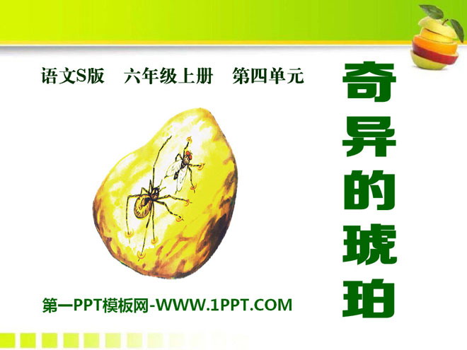 关键词:奇异的琥珀教学课件,语文S版六年级上册语文课件,六年级语文幻灯片课件下载,奇异的琥珀PPT课件下载,.ppt格式