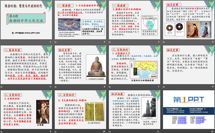 关键词:部编人教版七年级下册历史PPT课件免费下载,唐朝的中外文化交流PPT下载,.PPT格式;