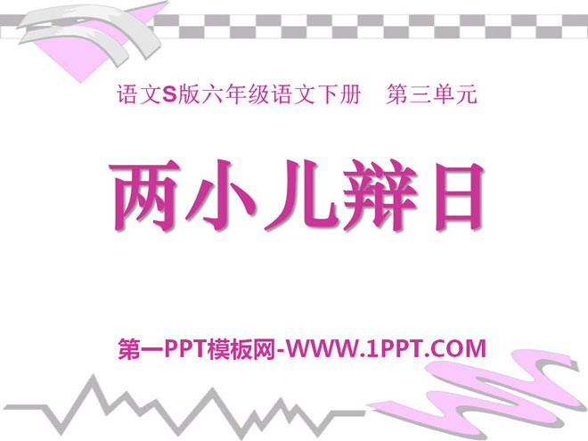 关键词:两小儿辩日教学课件,语文S版六年级下册语文课件,六年级语文幻灯片课件下载,两小儿辩日PPT课件下载,.ppt格式
