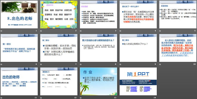 关键词:出色的老师教学课件,语文S版六年级下册语文课件,六年级语文幻灯片课件下载,出色的老师PPT课件下载,.ppt格式