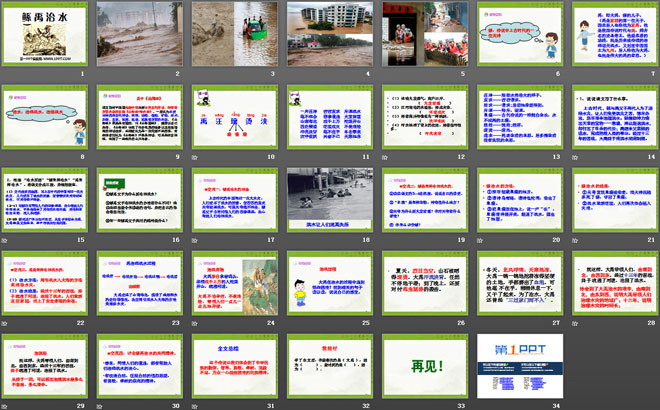 关键词:鲧禹治水教学课件,语文S版六年级下册语文课件,六年级语文幻灯片课件下载,鲧禹治水PPT课件下载,.ppt格式