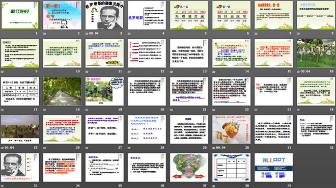 老太太卖葡萄的方法给了格罗培斯灵感。自由读五、六自然段,思考:格罗培斯为什么要求在乐园里撒下草种?他是怎样想的?