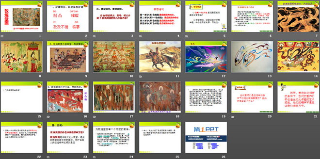 关键词:敦煌壁画教学课件,语文S版六年级下册语文课件,六年级语文幻灯片课件下载,敦煌壁画PPT课件下载,.ppt格式