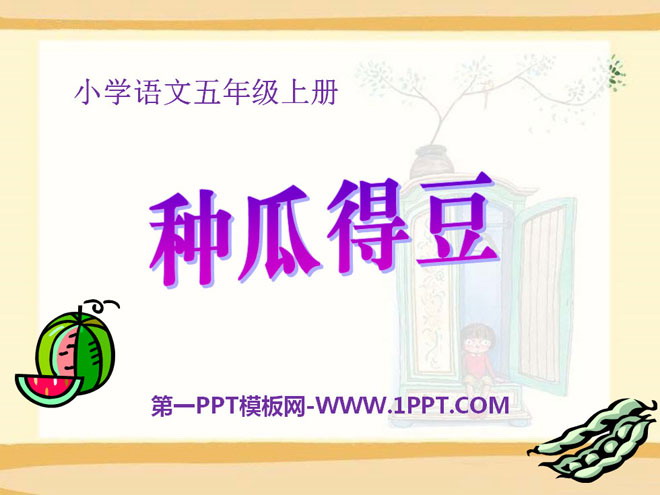 关键词:种瓜得豆教学课件,语文S版六年级下册语文课件,六年级语文幻灯片课件下载,种瓜得豆PPT课件下载,.ppt格式